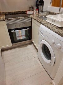 It was a very clean well equipped room. Security door panel. No keys to lose. There was a fridge/freezer, microwave, washing machine, proper kettle (most have pod machines now). Caffeteria if you wanted the really thing, toaster, tv, balcony (not pokey).